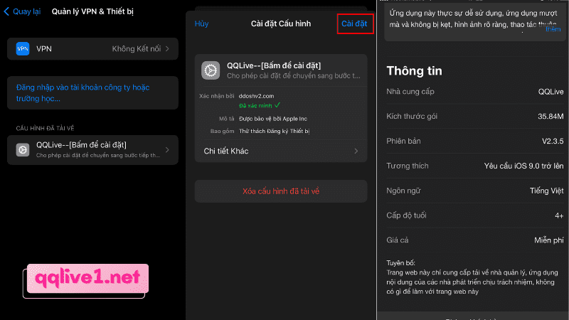 - Bước 3: Tải tệp QQ Live APK xong thì nhấn chọn “Cài đặt”.