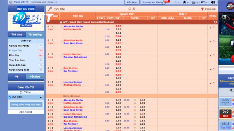 Bảng kèo sảnh SABA thể thao tại nhà cái i9BET